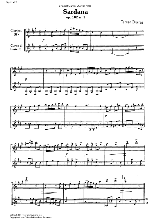 Digital Sheet Music for Dues danses by , Teresa Borràs scored for B-flat Clarinet/F Basset Horn; id:348143
