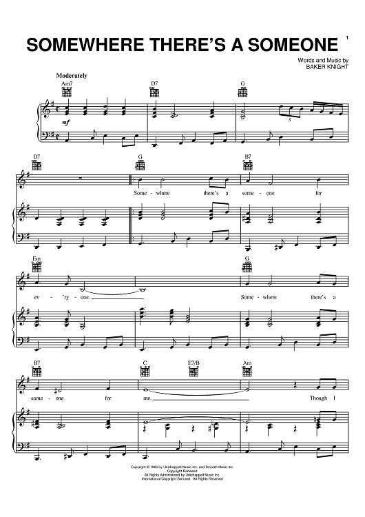 Digital Sheet Music for Somewhere There's A Someone by Dean Martin, Baker Knight scored for Piano/Vocal/Chords; id:379234