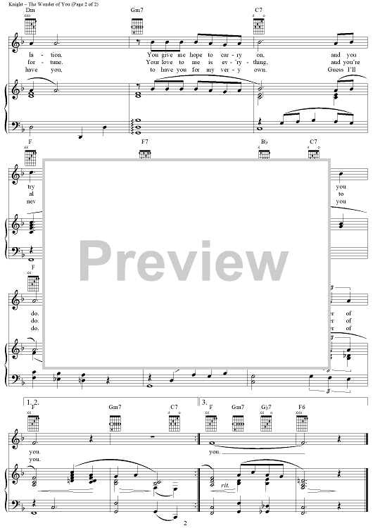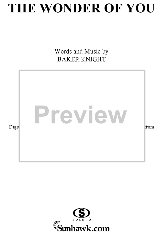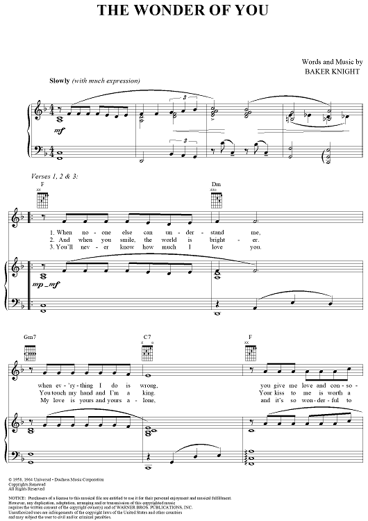Digital Sheet Music for The Wonder of You by Elvis Presley, Baker Knight scored for Piano/Vocal/Chords; id:286559