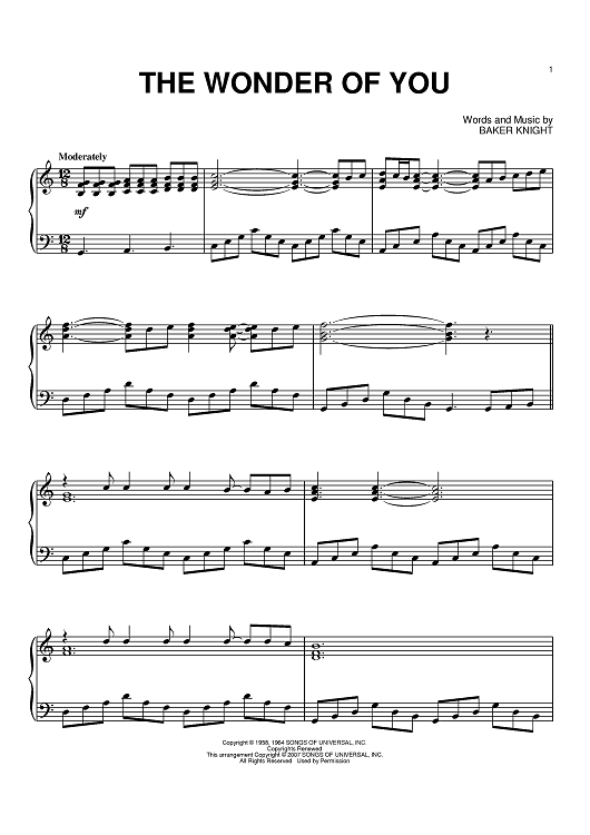 Digital Sheet Music for The Wonder Of You by Elvis Presley, Baker Knight scored for Piano; id:397877