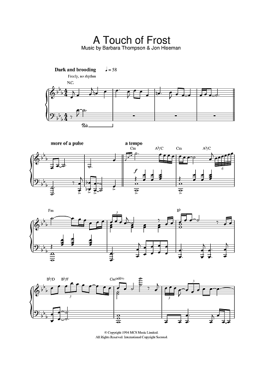 Digital Sheet Music for A Touch Of Frost by Jon Hiseman, Barbara Thompson scored for Piano; id:384853