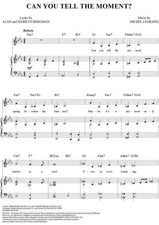 Digital Sheet Music for Can You Tell the Moment? by Michel LeGrand, Alan Bergman, Marilyn Bergman, Barbra Streisand scored for Piano/Vocal/Chords; id:187350