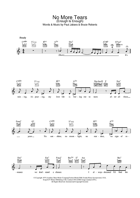 Digital Sheet Music for No More Tears by Bruce Roberts, Paul Jabara, Barbra Streisand scored for Lead Sheet; id:377007