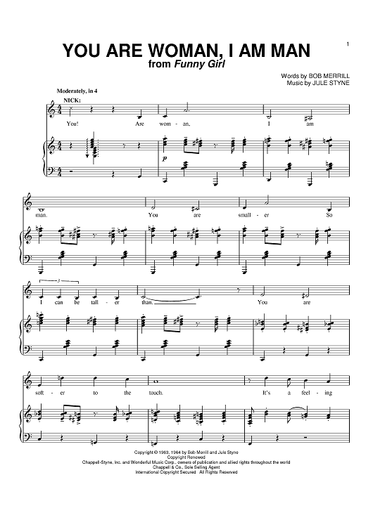 Digital Sheet Music for You Are Woman, I Am Man by Jule Styne, Bob Merrill, Barbra Streisand scored for Piano/Vocal/Chords; id:386634