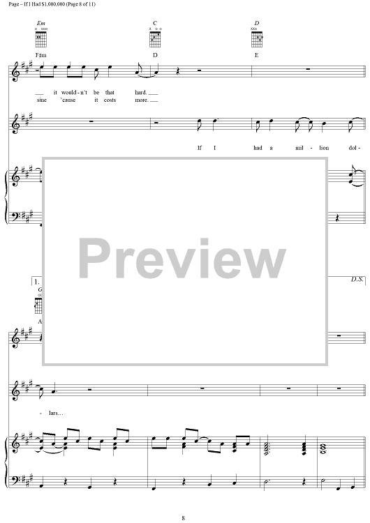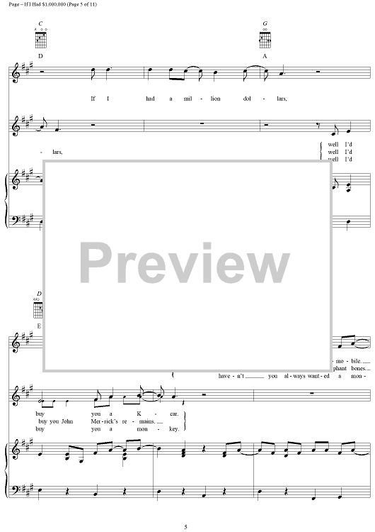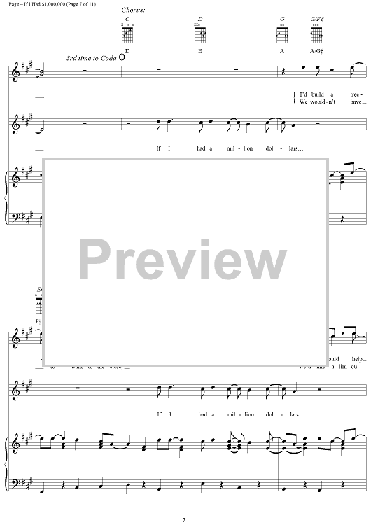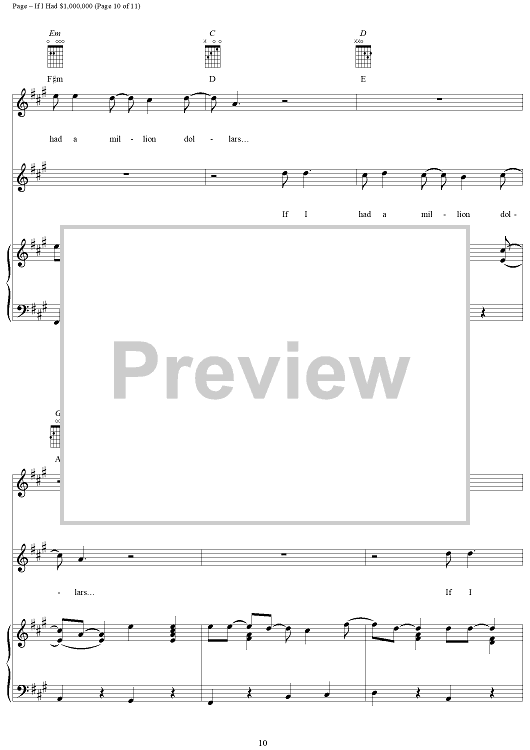 Digital Sheet Music for If I Had $1,000,000 by Steven Page, Ed Robertson, Barenaked Ladies scored for Piano/Vocal/Chords; id:288893