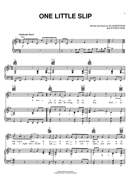 Digital Sheet Music for One Little Slip by Steven Page, Ed Robertson, Barenaked Ladies scored for Piano/Vocal/Chords; id:387350