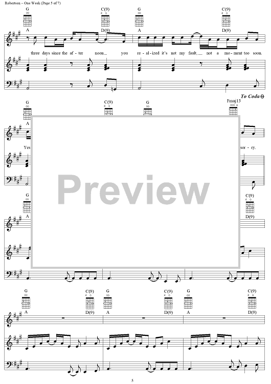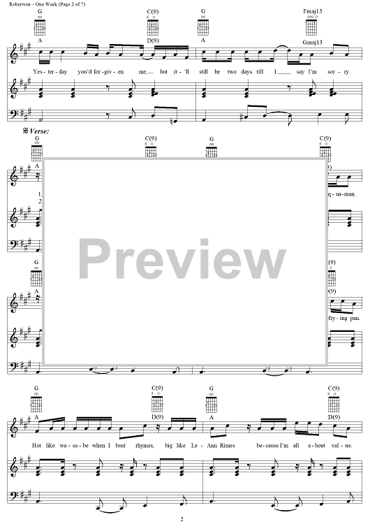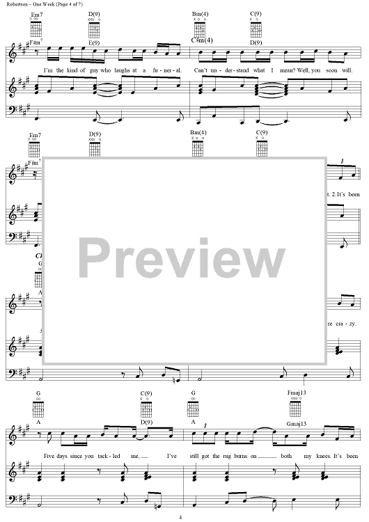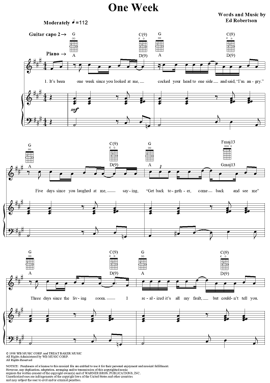 Digital Sheet Music for One Week by Ed Robertson, Barenaked Ladies scored for Piano/Vocal/Chords; id:110291