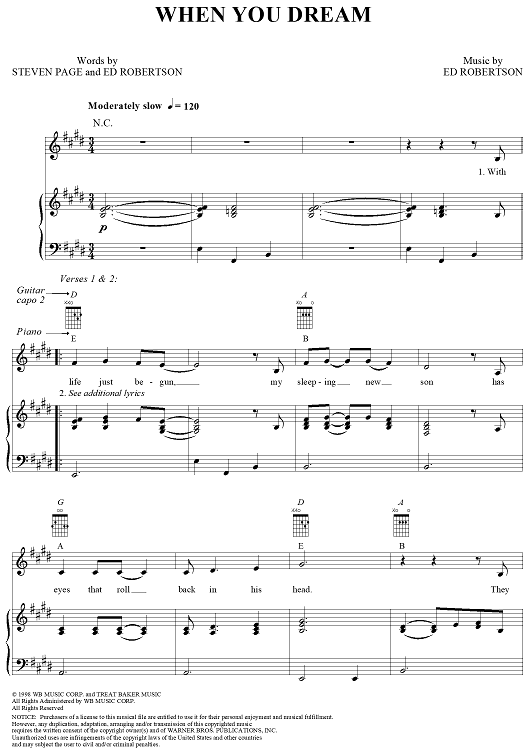 Digital Sheet Music for When You Dream by Steven Page, Ed Robertson, Barenaked Ladies scored for Piano/Vocal/Chords; id:255797