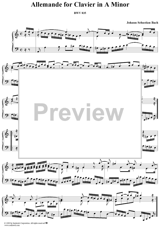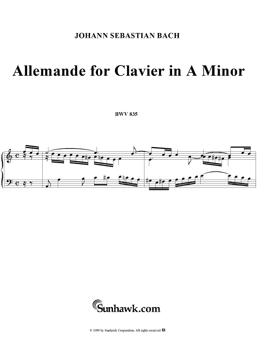 "Allemande in A Minor, BWV835" Sheet Music by Johann Sebastian Bach