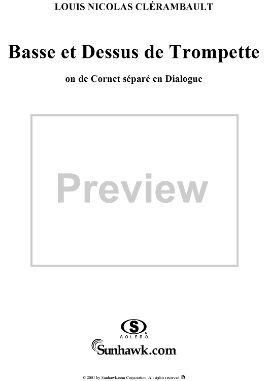 "Basse et Dessus de Trompette on de Cornet séparé en Dialogue" Sheet Music by Louis-Nicolas Clerambault