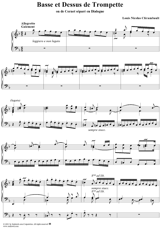 Digital Sheet Music for Basse et Dessus de Trompette on de Cornet séparé en Dialogue by Louis-Nicolas Clerambault scored for Organ Solo; id:253923