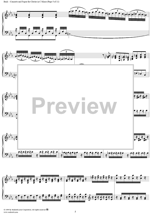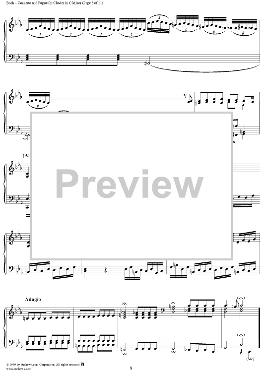 Digital Sheet Music for Concerto and Fugue in C Minor, BWV909 by Johann Sebastian Bach scored for Piano Solo; id:276564