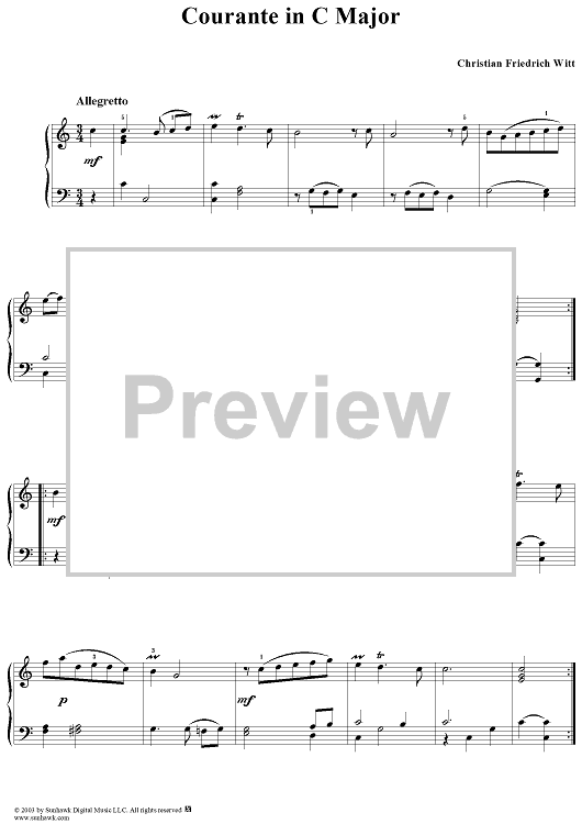 "Courante in C Major" Sheet Music by Christian Friedrich Witt