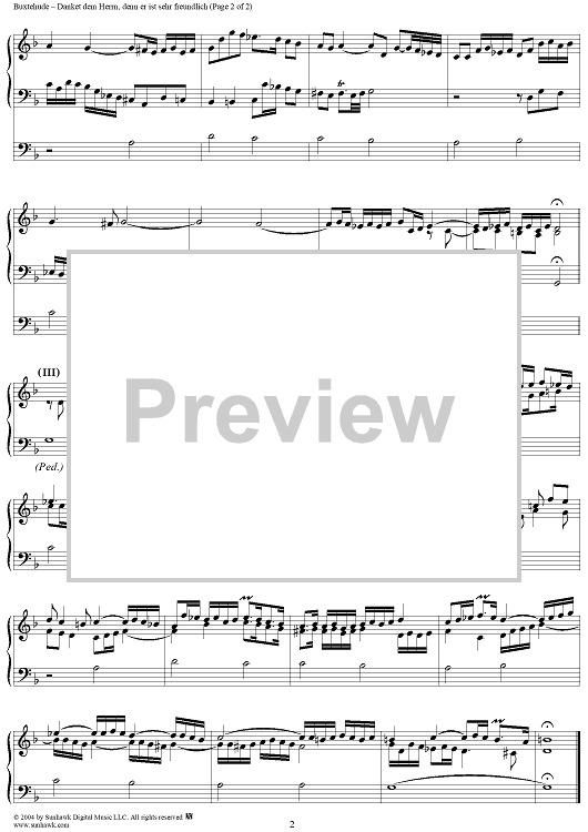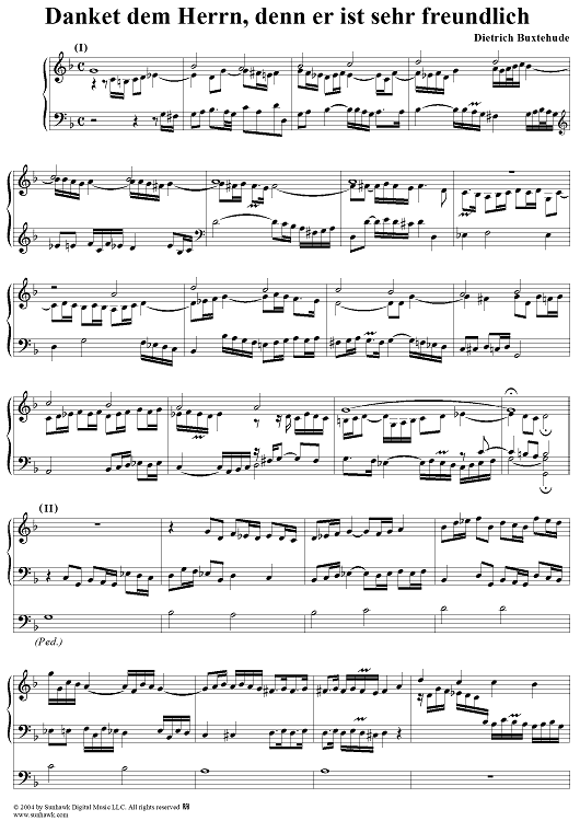 Digital Sheet Music for Danket dem Herrn, denn er ist sehr freundlich by Dietrich Buxtehude scored for Organ Solo; id:302943