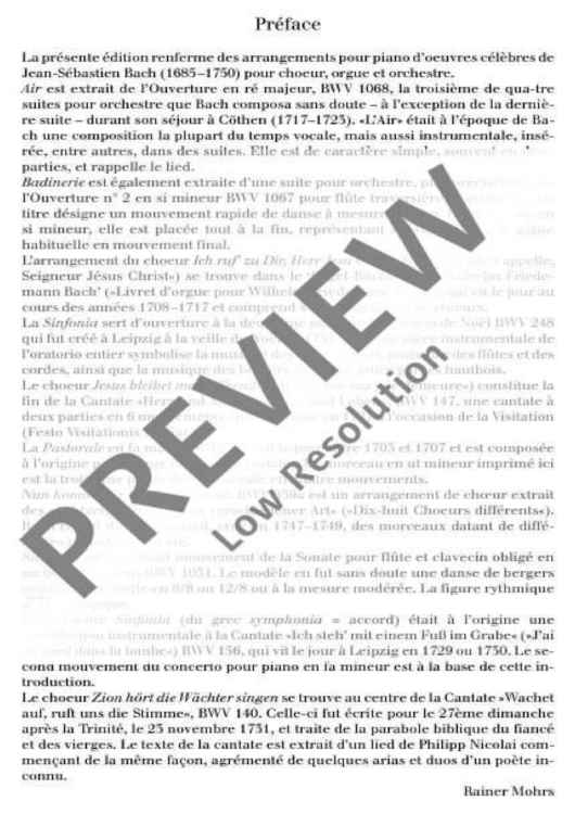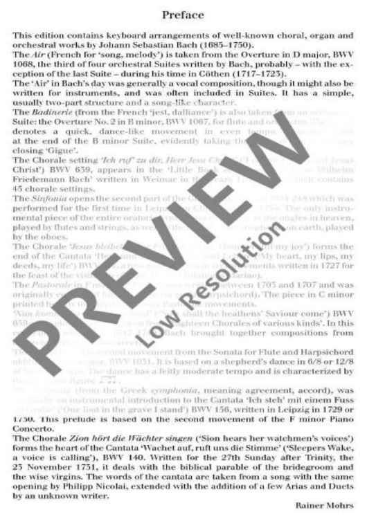 This collection of easy arrangements for piano of well-known choral, organ and orchestral works by J. S. Bach has enjoyed great popularity since its first appearance. Another easy arrangement has been added to this new edition in response to popular demand: the famous "Sinfonia” from the Christmas Oratorio. Contents also include: Air - Badinerie - I call to Thee, Lord Jesu Christ - Jesus, Thou art still my Treasure - Now comes the Heathens’ Saviour - Siciliano and plenty more.