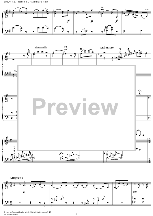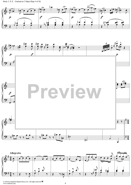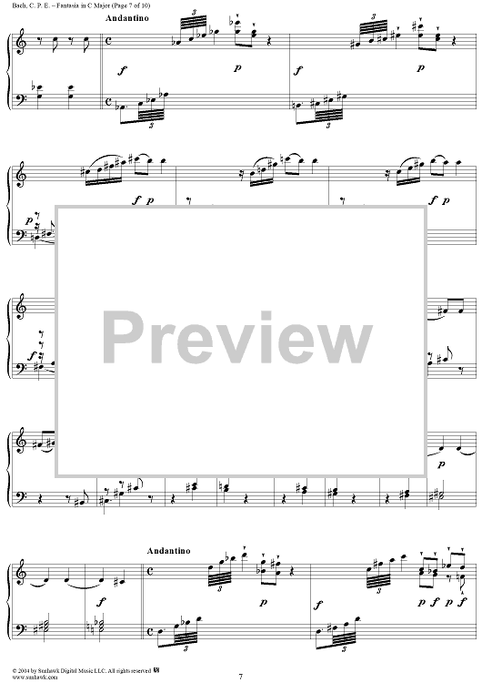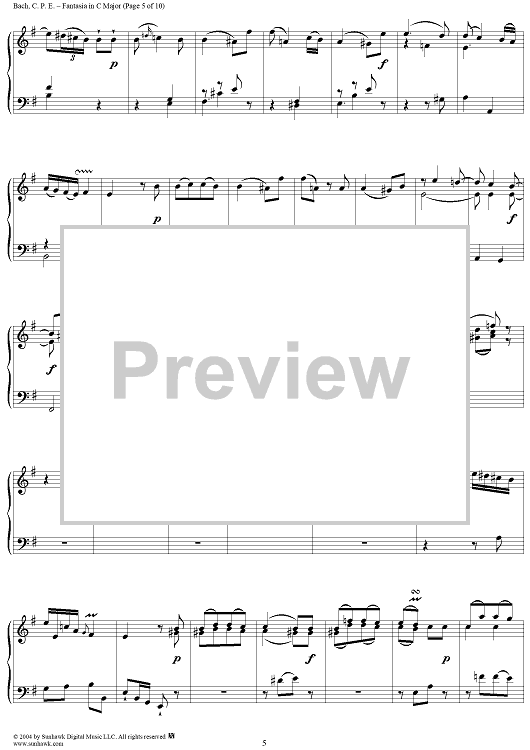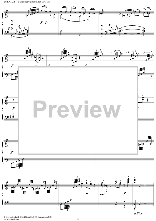 Digital Sheet Music for Fantasia in C Major (1785) by Carl Philipp Emanuel Bach scored for Piano Solo; id:294324