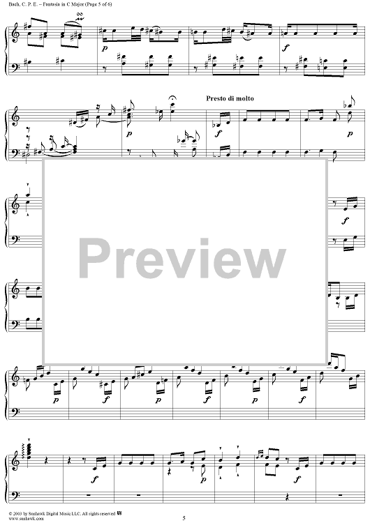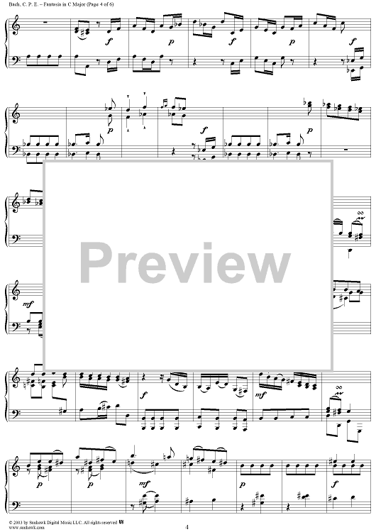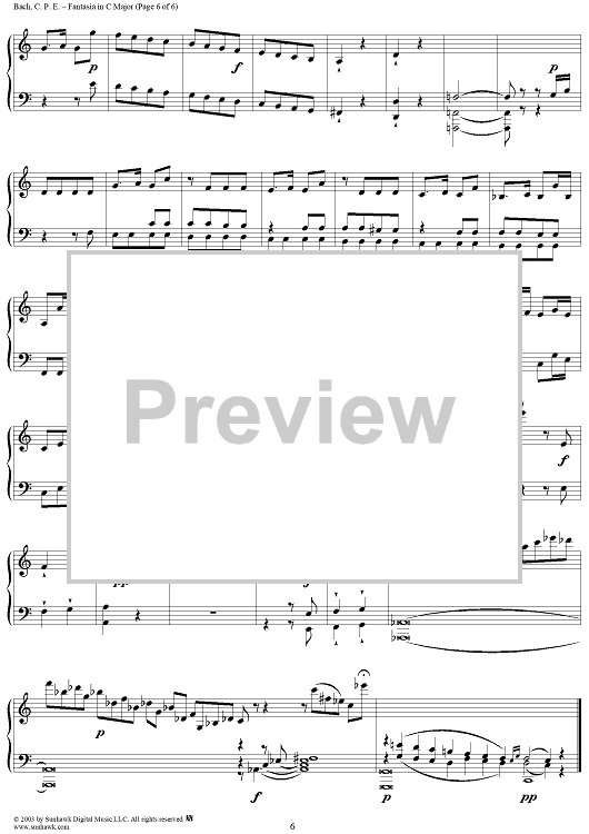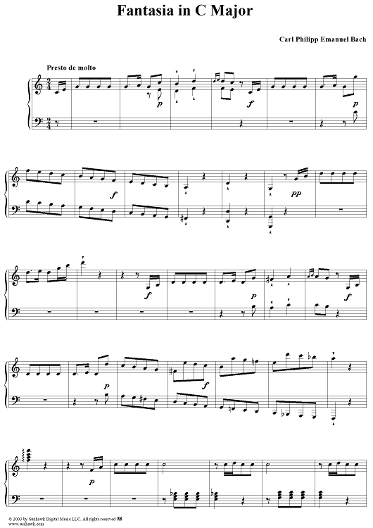 Digital Sheet Music for Fantasia in C Major (1787) by Carl Philipp Emanuel Bach scored for Piano Solo; id:294330