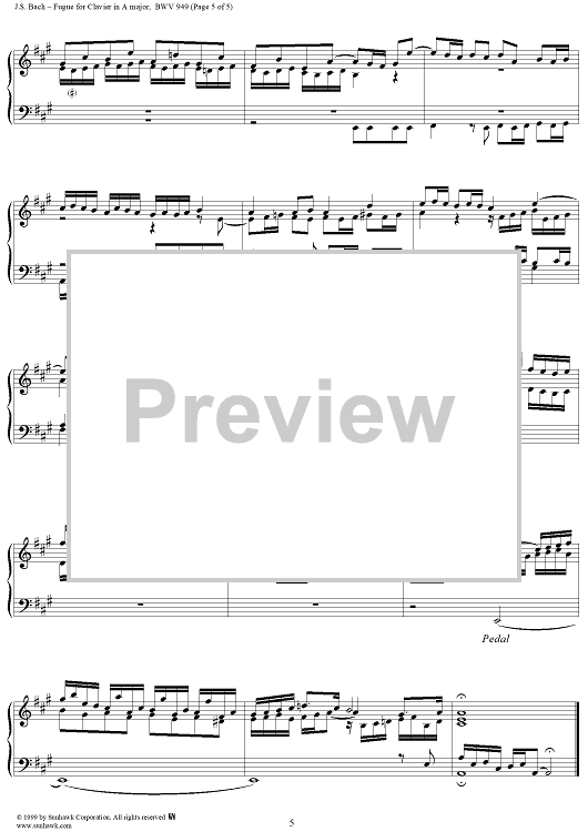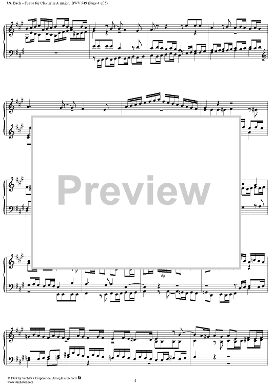 Digital Sheet Music for Fugue for Clavier in A Major, BWV949 by Johann Sebastian Bach scored for Piano Solo; id:113181