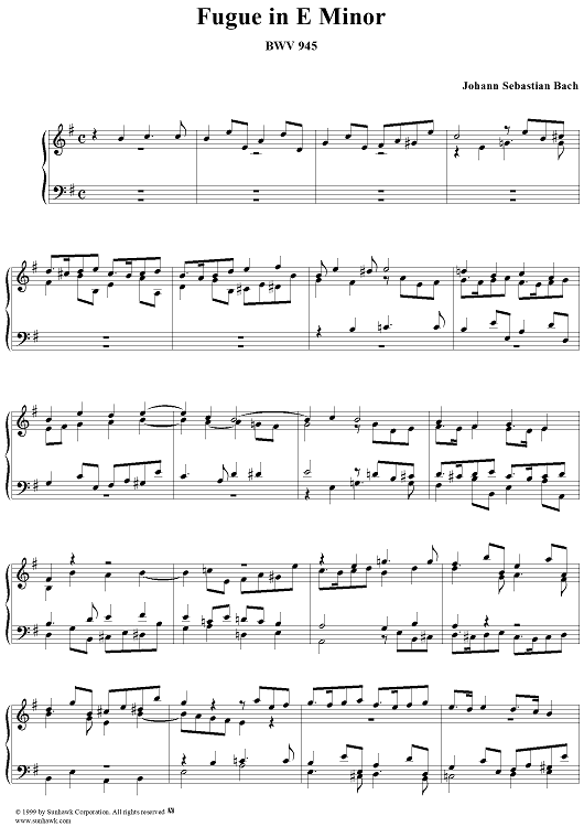 "Fugue for Clavier in E Minor (BWV 945)" Sheet Music by Johann Sebastian Bach