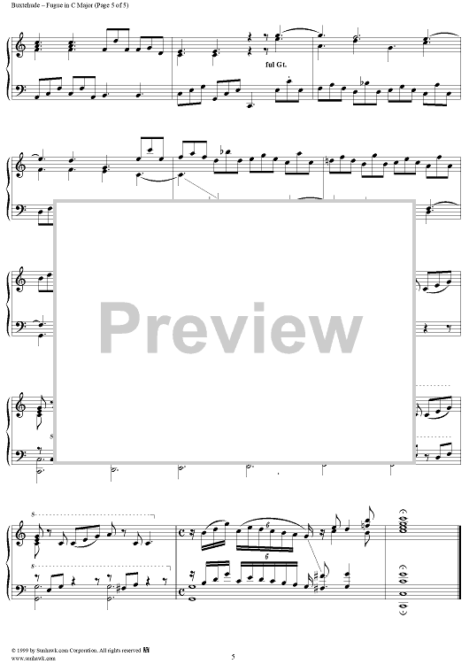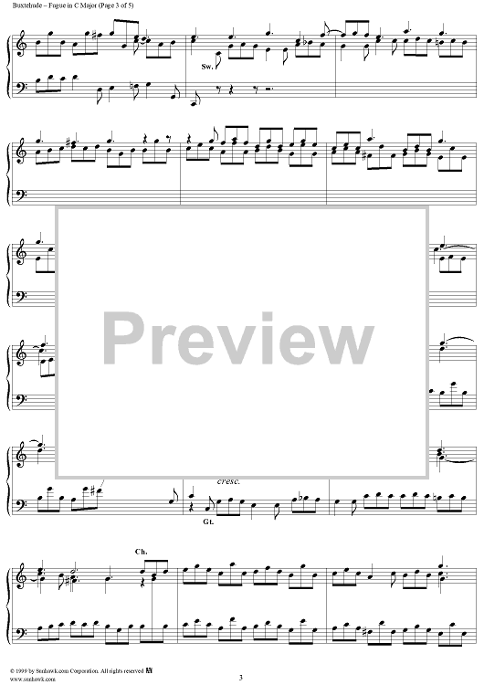 Digital Sheet Music for Fugue in C Major by Dietrich Buxtehude scored for Organ Solo; id:277641