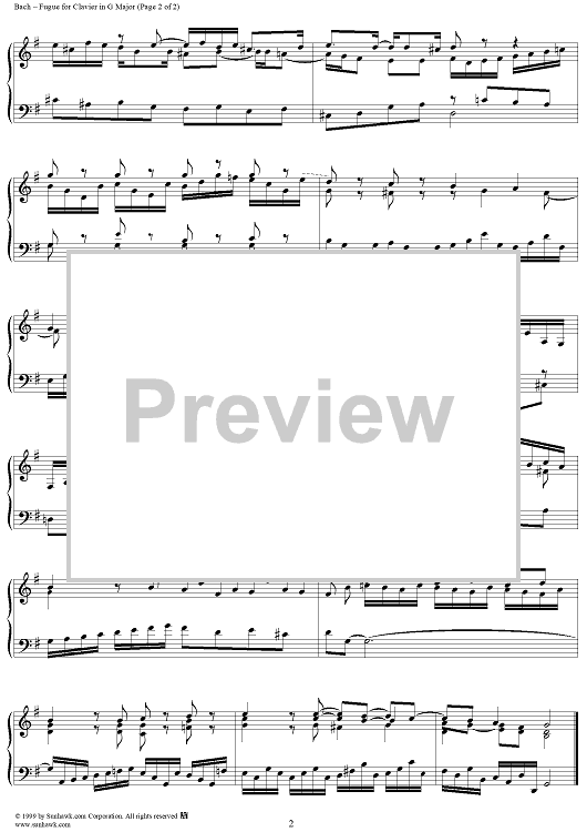 Digital Sheet Music for Fugue in G Major, BWV957 by Johann Sebastian Bach scored for Piano Solo; id:276454