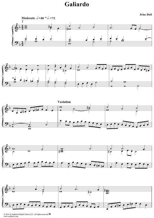 Digital Sheet Music for Galiardo in D Minor by John Bull scored for Piano Solo; id:294337