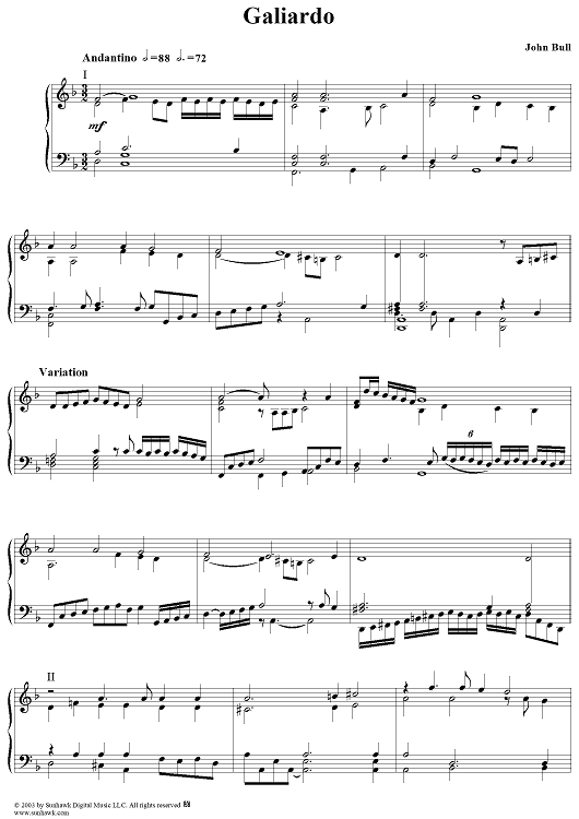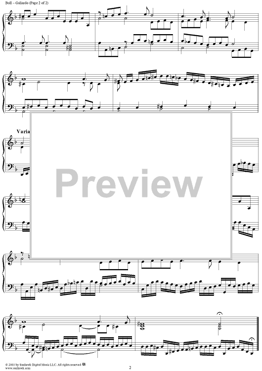 Digital Sheet Music for Galiardo in D Minor by John Bull scored for Piano Solo; id:294338