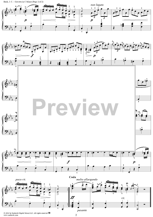 Digital Sheet Music for Gavotte in C Minor by Johann Christian Bach scored for Piano Solo; id:295637
