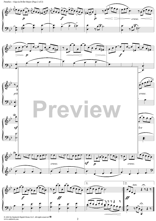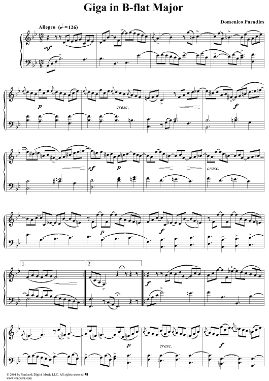 Digital Sheet Music for Giga in B-flat Major by Pietro Domenico Paradies scored for Piano Solo; id:295656