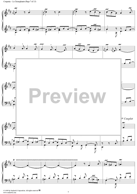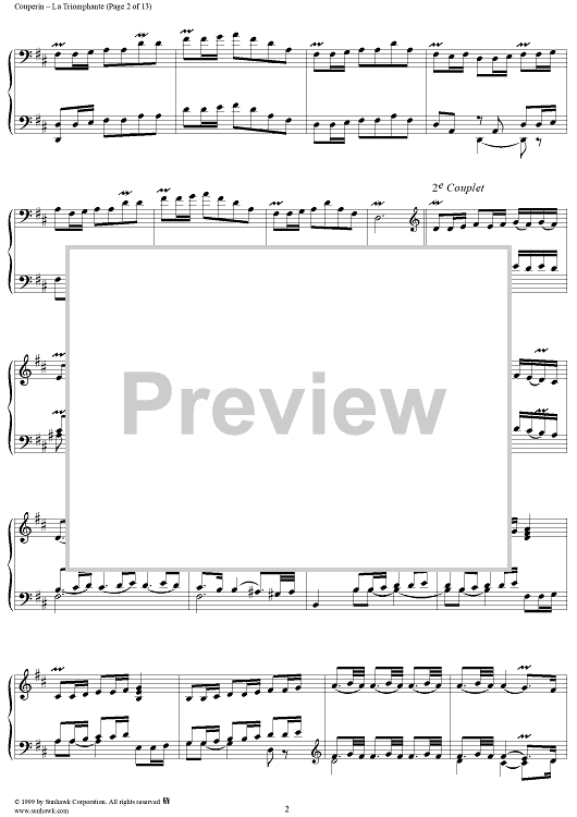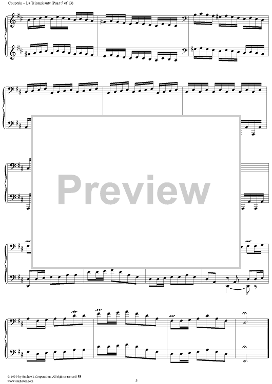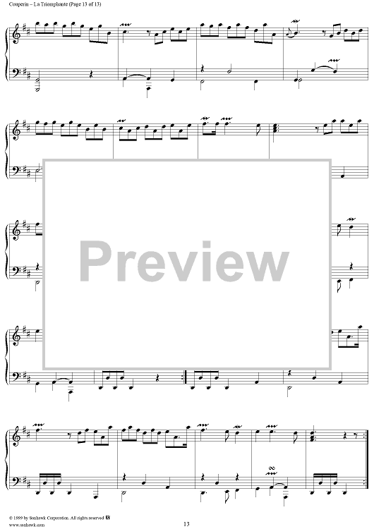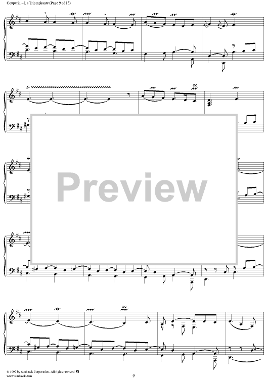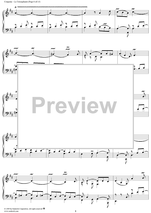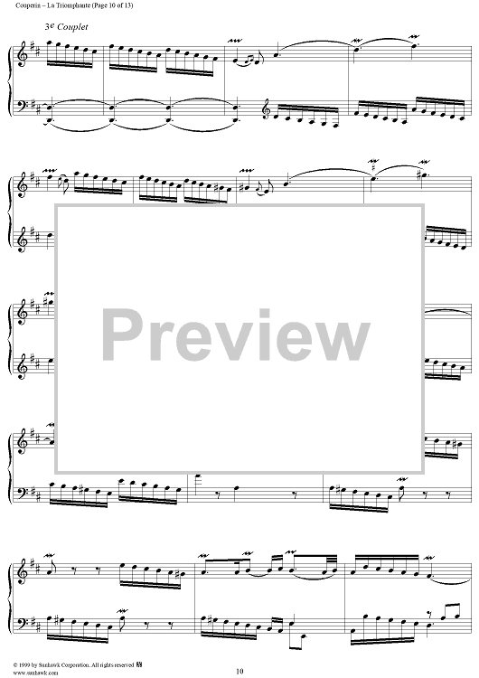 Digital Sheet Music for Harpsichord Pieces, Book 2, Suite 10, No.1: La Triomphante Rondeau. 1. Bruit de Guerre by Francois Couperin scored for Piano Solo; id:272205