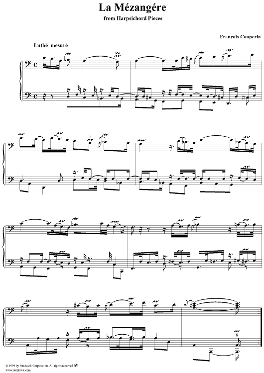 Digital Sheet Music for Harpsichord Pieces, Book 2, Suite 10, No.2: La Mézangére by Francois Couperin scored for Piano Solo; id:272209