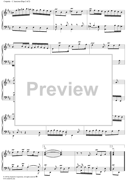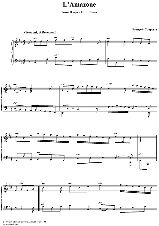 Digital Sheet Music for Harpsichord Pieces, Book 2, Suite 10, No.6: L'Amazône by Francois Couperin scored for Piano Solo; id:272211