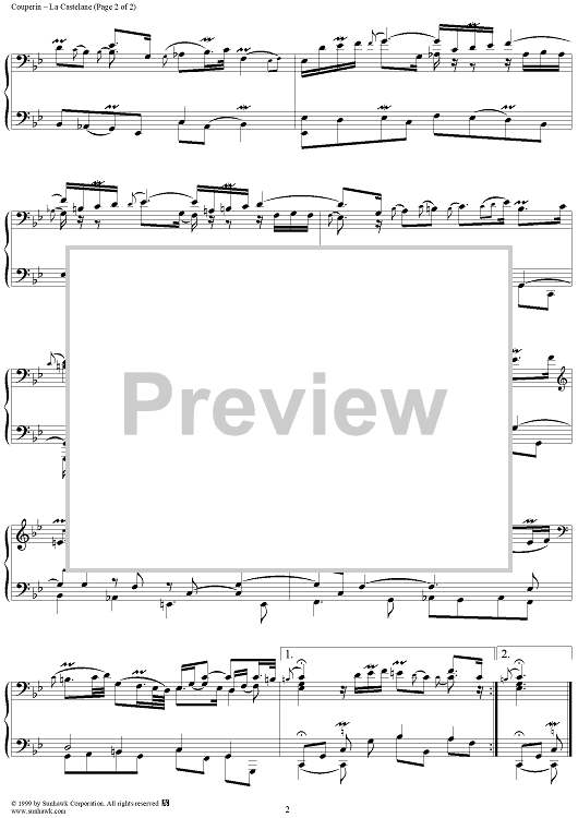 Digital Sheet Music for Harpsichord Pieces, Book 2, Suite 11, No.1: La Castelane by Francois Couperin scored for Piano Solo; id:272208