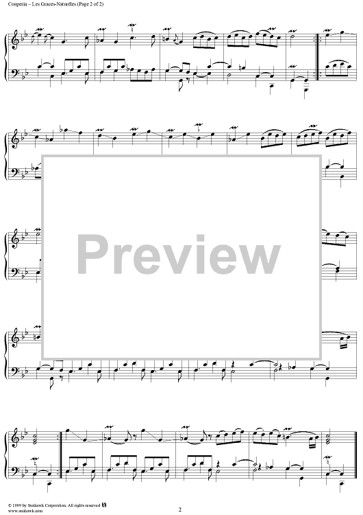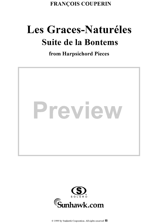 Digital Sheet Music for Harpsichord Pieces, Book 2, Suite 11, No.3: Les Graces-Naturéles 1. Suite de la Bontems, by Francois Couperin scored for Piano Solo; id:272215