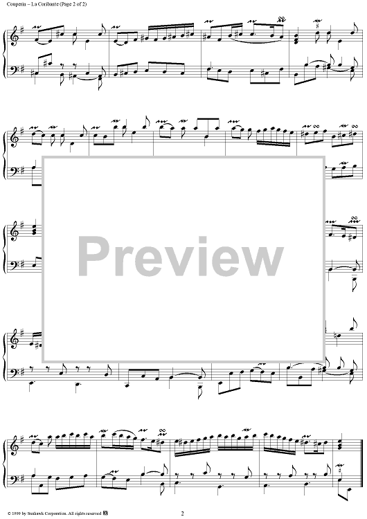 Digital Sheet Music for Harpsichord Pieces, Book 2, Suite 12, No.4: La Coribante by Francois Couperin scored for Piano Solo; id:272218