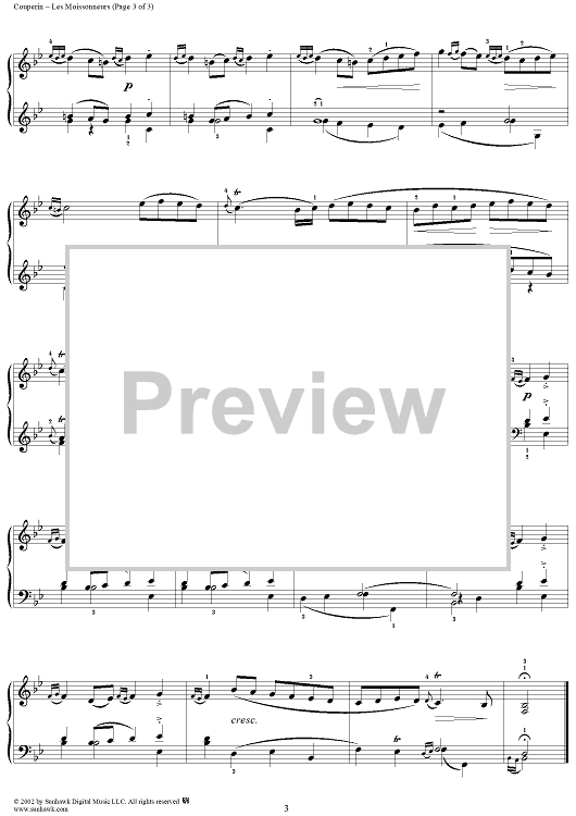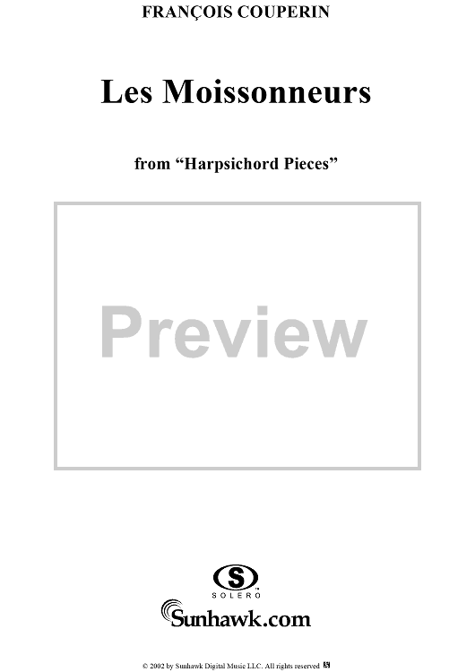 Digital Sheet Music for Harpsichord Pieces, Book 2, Suite 6, No. 1: Les Moissonneurs by Francois Couperin scored for PIano Solo; id:269429