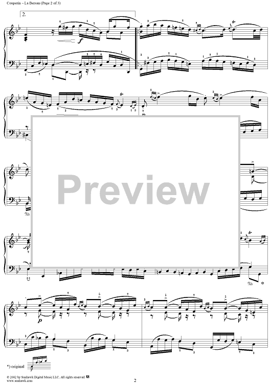 Digital Sheet Music for Harpsichord Pieces, Book 2, Suite 6, No. 4: La Bersan by Francois Couperin scored for Piano Solo; id:264846