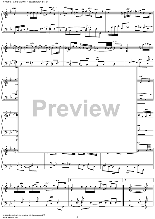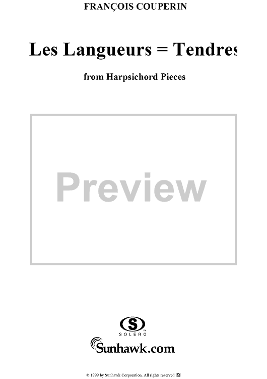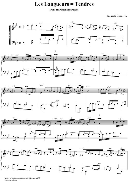 Digital Sheet Music for Harpsichord Pieces, Book 2, Suite 6, No.2: Les Languers= Tendres by Francois Couperin scored for Piano Solo; id:272172