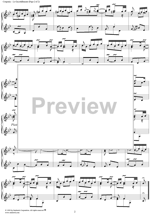 Digital Sheet Music for Harpsichord Pieces, Book 2, Suite 6, No.3: Le Gazoüillement by Francois Couperin scored for Piano Solo; id:272173