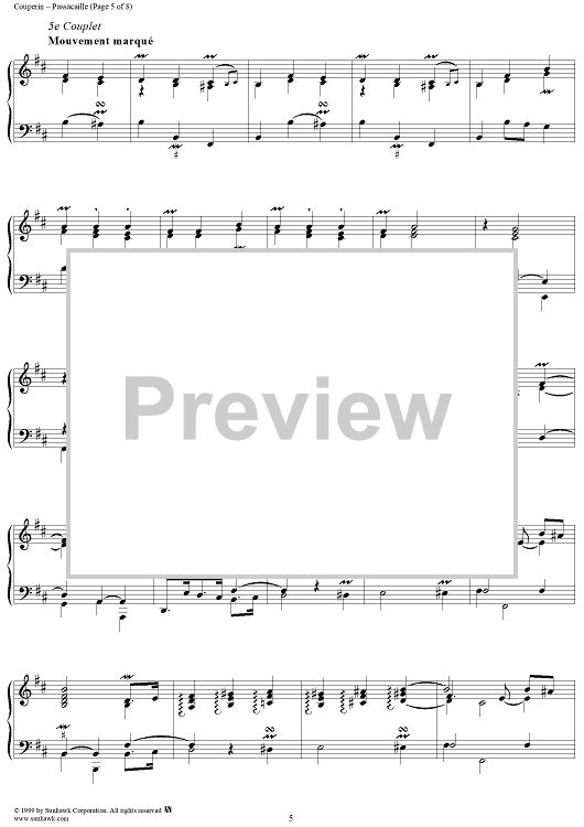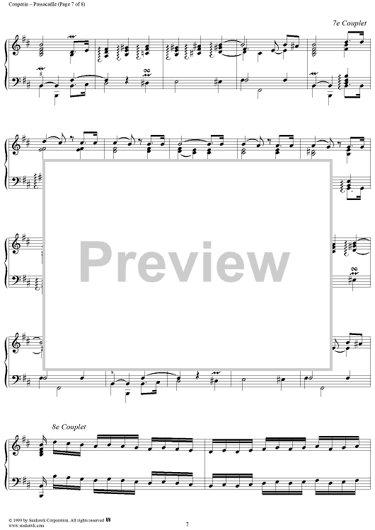 Digital Sheet Music for Harpsichord Pieces, Book 2, Suite 8, No.9: Passacaille by Francois Couperin scored for Piano Solo; id:272190