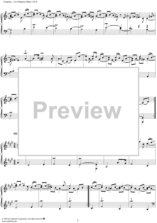 Digital Sheet Music for Harpsichord Pieces, Book 2, Suite 9, No.3: Les Charmes (Premiere and Seconde partie) by Francois Couperin scored for Piano Solo; id:272196