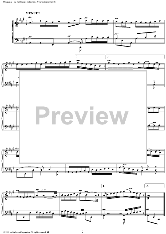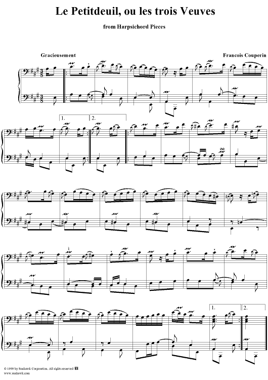 Digital Sheet Music for Harpsichord Pieces, Book 2, Suite 9, No.9: Le Petit-deüil, ou les trois Veuves by Francois Couperin scored for Piano Solo; id:272204