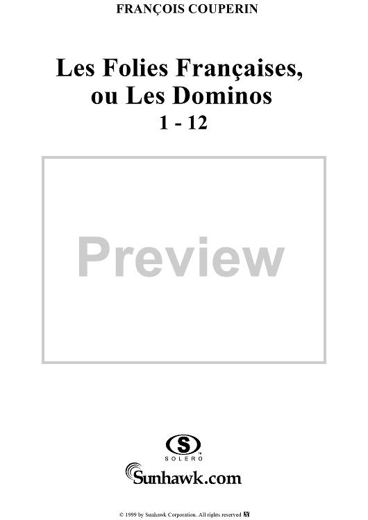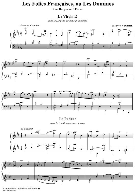 "Harpsichord Pieces, Book 3, Suite 13, No. 4: Les folies françoises, ou Les dominos 1-12" Sheet Music by Francois Couperin