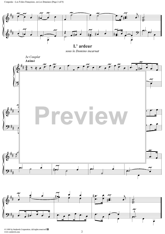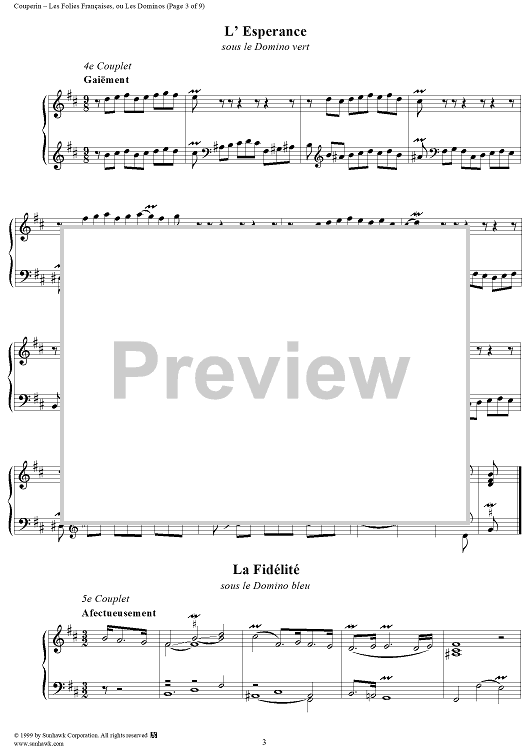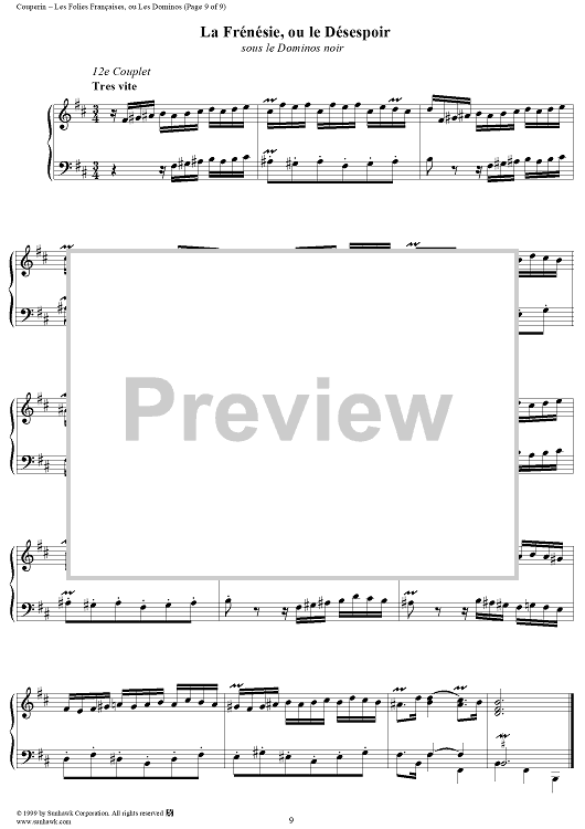 Digital Sheet Music for Harpsichord Pieces, Book 3, Suite 13, No. 4: Les folies françoises, ou Les dominos 1-12 by Francois Couperin scored for Piano Solo; id:272658