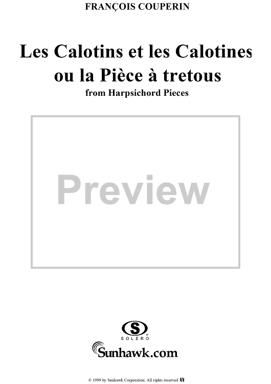 "Harpsichord Pieces, Book 3, Suite 19, No. 1: Les Calotins et les Calotines, ou la Pièce à tretous" Sheet Music by Francois Couperin
