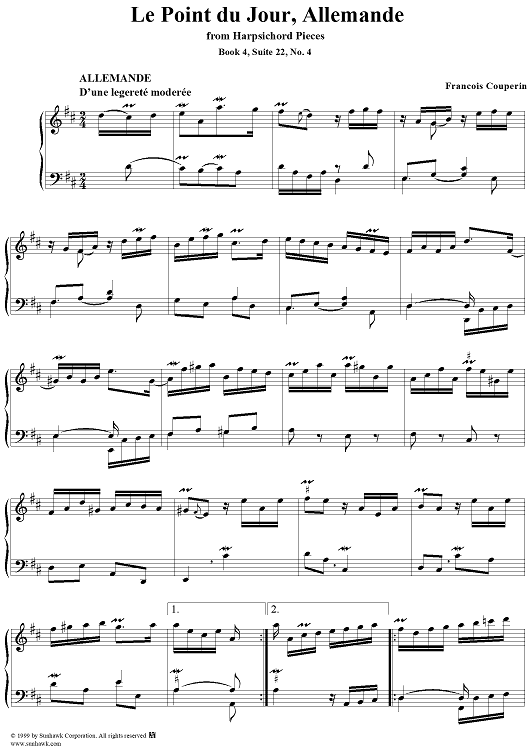"Harpsichord Pieces, Book 4, Suite 22, No.4: Le point du jour, allemande" Sheet Music by Francois Couperin