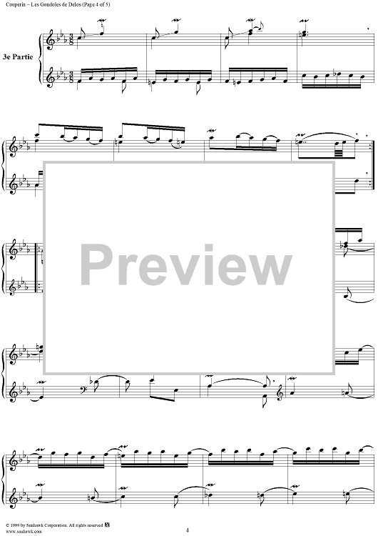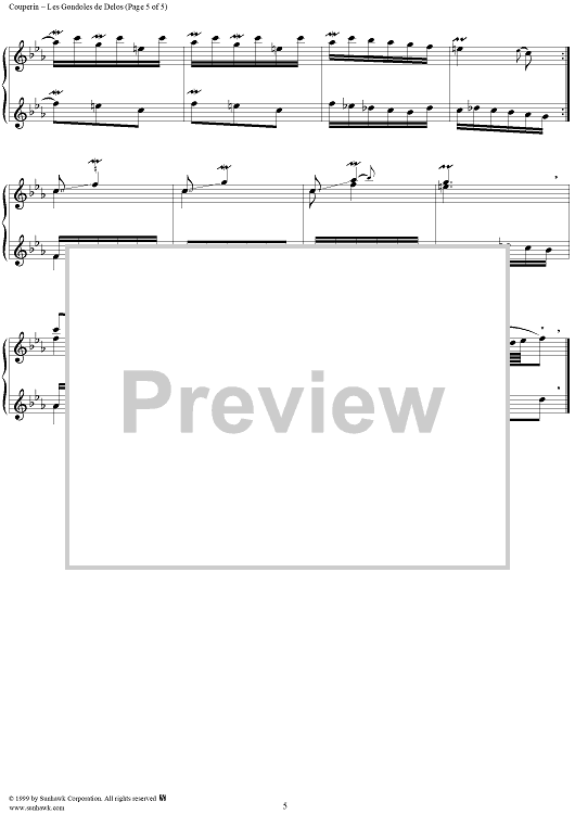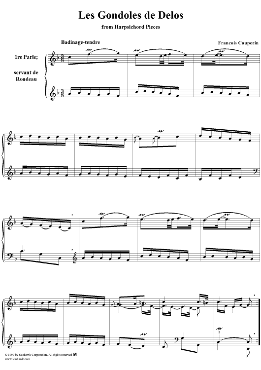Digital Sheet Music for Harpsichord Pieces, Book 4, Suite 23, No.4: Les gondoles de Delos by Francois Couperin scored for Piano Solo; id:272262