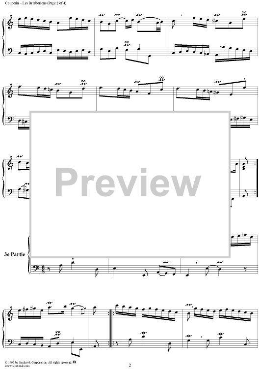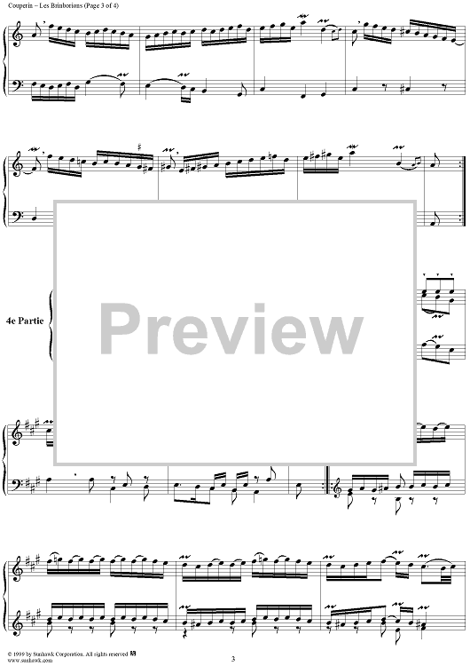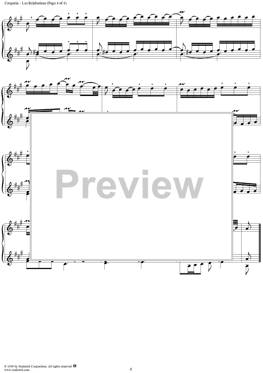 Digital Sheet Music for Harpsichord Pieces, Book 4, Suite 24, No.5: Les brinborions by Francois Couperin scored for Piano Solo; id:272271