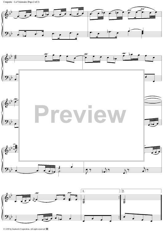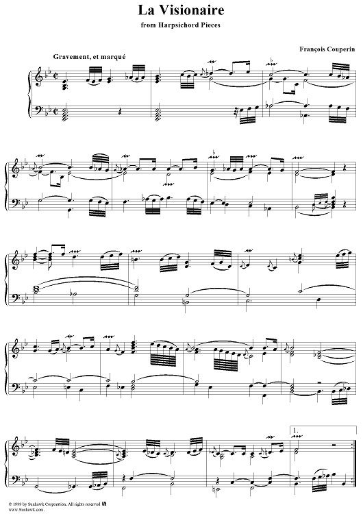 Digital Sheet Music for Harpsichord Pieces, Book 4, Suite 25, No.1: La Visionaire by Francois Couperin scored for Piano Solo; id:272275