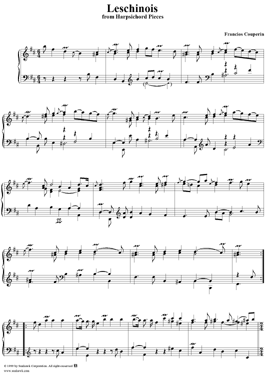 Digital Sheet Music for Harpsichord Pieces, Book 4, Suite 27, No.3: Les chinois by Francois Couperin scored for Piano Solo; id:272285
